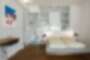 Basel Backpack GundeldingerfeldBasel2013Thema:TransformationGrösse:sNutzung:GewerbeStatus:gebautBauherrschaft:Kantensprung AGProjekt-Team:Tina Ekener, Eliane ZihlmannAuf dem Gundeldingerfeld in Basel betreibt Basel Backpack ein Hostel. Zu den bereits vorhanden Mehrbettzimmern mit Nasszellen auf dem Gang sollen durch Umnutzung und Ausbau zwei zusätzliche Zimmer mit eigenen Nasszellen gewonnen werden sowie eine neue Eingangshalle. Durch Verkleinern der bestehenden Waschküche und durch Einziehen einer neuen Zwischendecke aus Beton im hohen Durchgangsbereich, können ohne Landerweiterung diese zusätzlichen Bedürfnisse untergebracht werden. Um die beiden Zimmer unabhängig zu erschliessen ist eine Aussentreppe nötig. Diese bietet ebenfalls einen Balkon mit Holzrost für die neuen Zimmer. Recycling von alten Bauteilen: Lavabos und Armaturen sind teilweise von der Bauteilbörse. Der Holzboden im Zimmer 1 ist eine Wiederverwendung eines gebrauchten Bodens. Ebenfalls wurde ein bestehendes Fensterelement aus der Abbruchphase zur Seite gestellt und aufbereitet. Danach konnte dieses Bauteil als origineller Raumteiler zwischen Bad und Zimmer neu genutzt werden. Die Zimmer und Bäder sind unterschiedlich gestaltet und haben dadurch einen individuellen Charakter. Raumtrenner wie die neue Schiebetüre oder das umgebaute Fensterelement ermöglichen durchgehendes Licht von Nord nach Süd von beiden Seiten. Der Raum ist als Ganzes spürbar, hell und angenehm, trotz Raumtrennung zwischen Zimmer und Bad. Leitungsverkleidungen wurden zusätzlich genutzt um indirekte Lichtbänder zu integrieren.
