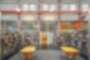 Bibliothek GundeldingerfeldBasel2004Thema:TransformationGrösse:mNutzung:GewerbeStatus:gebautBauherrschaft:Kantensprung AGProjekt-Team:Paul BoppartDie Halle 8, wegen ihrer Form «Basilika» genannt, wurde 1889 gebaut. Sie ist das einzige denkmalgeschützte Gebäude auf dem Gundeldinger Feld. Im Zuge der Umnutzung des Gundeldinger Feldes wurde die 80 m lange Halle in drei geteilt: im vordersten Teil befindet sich das Restaurant eo ipso, im mittleren Teil das Querfeld und im hintersten Teil die Bibliothek der ABG. Der Eingang und die Ausgabetheke der Bibliothek befinden sich im hohen zentralen Raum. Im Seitenschiff befinden sich die Nebenräume. Der Industrieklötzliboden in der ehemaligen Werkhalle wurde mit einem Gussasphalt überzogen. Anstelle der Warmluftheizung wurden katalytische Gasheizungen eingesetzt, die die Halle nur während der Öffnungszeiten der Bibliothek heizen. Die Büchergestelle zonieren sowohl die grosse Halle mit ihren 9 m Raumhöhe als auch die Seitenschiffe. Dort wurden auch ein Büro und die sanitären Anlagen eingebaut. Um den grossen Widerhall in der Halle zu dämpfen, sind an den Querwänden Akustikplatten eingebaut und an mehreren Orten Teppiche verlegt worden. Durch die Oberlichter fällt viel indirektes Licht in den Raum, der so tagsüber mit natürlichem Licht gut ausgeleuchtet ist.