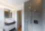 KäferholzstrasseBasel2016Thema:AdaptionGrösse:mNutzung:WohnenStatus:gebautFläche:266 m2Bauherrschaft:PrivatProjekt-Team:Edith Nafzger, Salome Lustenberger Das Mittelhaus einer Reihenhausgruppe von 5 Häusern sollte gartenseitig erweitert werden. Anhand von Vorstudien hat man die massgeblich baurechtlichen Rahmenbedingungen (maximale Bruttogeschossfläche und zulässiges Zonenprofil) eruiert. Auf der ganzen Parzellenbreite konnte im EG ein Anbau von 4.5m, sowie im OG von 2.9m Tiefe angebaut werden. Von Beginn an wurde die Nachbarschaft in die Projektierung einbezogen, da mit dem Anbau die Gleichartigkeit der Häuserzeilen sich veränderte. Mit einem abgeschrägten Anbau (EG und OG in Gegenrichtung), wollten wir das Massive der Kuben optisch verringern und den Innenraum spannender gestalten. Die Nachbarn hätten die Idee aufnehmen können um die Gleichartigkeit der Gebäudegruppe neu zu interpretieren, bzw. wieder zu erhalten. Der Schwerpunkt der Umgestaltung des REFH lag im Erdgeschoss, der Wohnraum wurde um den Anbau erweitert, die bestehende Küche zum Wohnraum geöffnet und vergrössert. Die bestehenden Naturstein-Wandplatten waren unsere Planungsvorgabe für die neue Kochinsel. Der Eingangsbereich wurde vergrössert und mit dem Glasabschluss entstand ein Sichtbezug zum Essraum. Die Bauherrschaft hatte Glaskunst-Stehlen die hier aufgestellt werden sollten. Im Obergeschoss war die bestehende Dusche zu klein und das Zimmer zur Strasse hin durfte nicht wesentlich verkleinert werden. Die bodenebene Dusche, mit Glasabschluss und der Waschtisch auf Mass, lässt den Raum grösser erscheinen als er ist. Mit dem Anbau konnte das gartenseitige Zimmer vergrössert werden und auf dem auskragenden EG-Anbau entstand eine begrünte Terrasse. Im Untergeschoss entstand gartenseitig ein unbeheizter Hobbyraum. Wir haben den Anbau einseitig um einen Meter von der Parzellengrenze zurückgenommen. Ansonsten hätten wir wegen den Grabarbeiten, die Terrasse des Nachbarn komplett erneuern müssen und der Zugang zum Garten wäre blockiert gewesen. Die Kanalisation, Sanitärleitungen, Elektro und die Heizung wurden komplett saniert. Für die Warmwasser-Aufbereitung hat man eine PV-Anlage auf dem Anbau installiert. Die Beheizung im Anbau erfolgt mit Wandheizungen, damit die grosszügigen Fensterfronten nicht mit Radiatoren verstellt werden. An den Flügelmauern wurden Heizungsrohre verlegt, analog einer Bodenheizung und mit Lehmputz überdeckt. Der Nachbar im Haus Nr. 8 hat mit uns die Aushub- und Betonarbeiten geplant und ausgeführt. Dadurch konnte die Baustelleninstallation geteilt werden und es war für beide Parteien kostengünstiger. Dies wirkte sich auch positiv auf die beengten Verhältnisse aus, sie konnten so besser bewältigt werden.