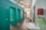 Hebdi Boulderhalle, ZiegelhofLiestal2019Thema:TransformationGrösse:mNutzung:Sport/ FreizeitStatus:abgeschlossenAuftragsart:DirektauftragFläche:925 m2Bauherrschaft:CoOpera Immobilien AGProjekt-Team:Esthi Grass, Eric Honegger, Helen Maron, Annkathrin Tschopp, Birgit WahlDie Brauerei Ziegelhof in Liestal schloss 2006 ihre Tore. Von 2015 bis 2023 entwickelten baubüro in situ und Denkstatt Sàrl in enger Zusammenarbeit mit der Stadt das rund 6000 m² grosse Areal. Seit 2019 befindet sich in der ehemaligen Abfüllhalle eine Boulderhalle. Dafür wurde die Gebäudehülle gezielt saniert: Nach dem Entfernen asbesthaltiger Eternitplatten erhielt das Dach eine neue Dämmung, Wellblechdeckung und eine PV-Anlage. Die prägende Alu-Fensterfront blieb erhalten, Lüftungsflügel und Festverglasung wurden erneuert, punktuell erhielten Wände eine Dämmung. Beheizt wird die Halle nur minimal. Neue Garderoben mit Duschen und WCs wurden mit wiederverwendeten Toiletten, Lavabos und Armaturen ausgestattet; auch Reserveplatten aus dem Brauereibestand und Restposten kamen zum Einsatz. Die Mietenden bauten Bar, Boulderhalle, Kraftraum und Werkstatt selbst aus und setzten dabei viele Materialien der alten Brauerei in neuer Funktion wieder ein – von Harassen über Holzfässer bis zu überzähligen Glasscheiben. Die grossen Boulderwände entstanden in Handarbeit, zugeschnitten, bemalt, gesandet und mit über 100'000 Bohrlöchern für Griffe versehen. Fotos: Martin Zeller